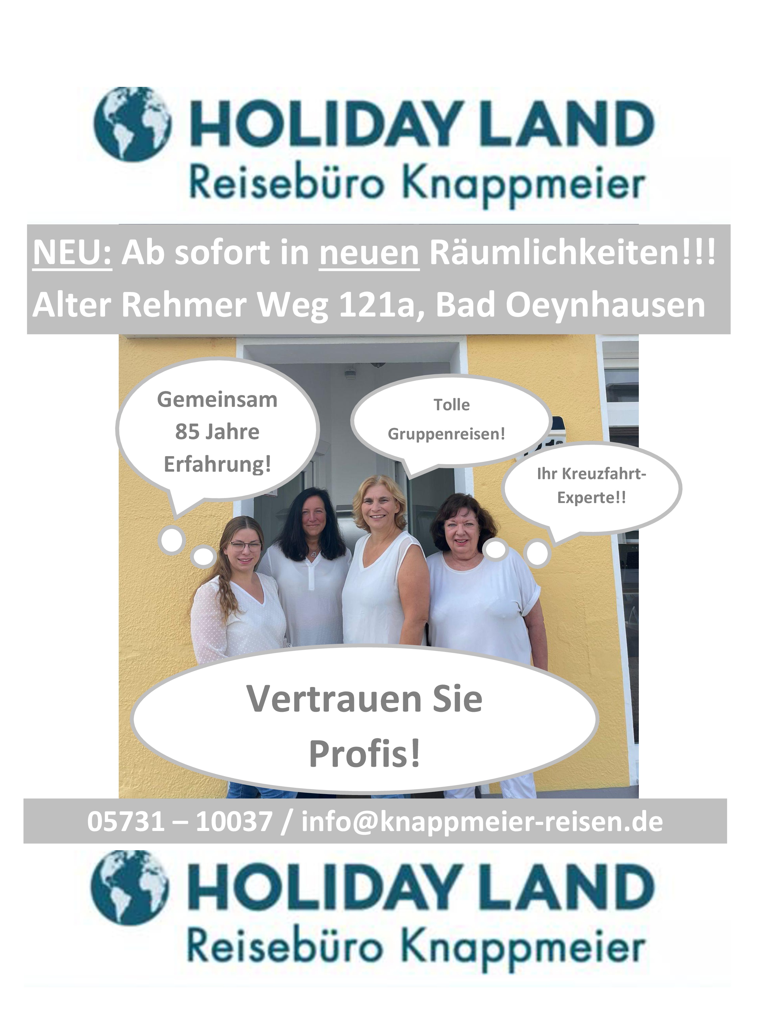 Die Reise geht weiter! Zum 01.11.2022 habe ich das Reisebüro Knappmeier übernommen und freue mich darauf, meine Kunden zu beraten und ihnen zu helfen, ihre Urlaubsträume zu verwirklichen!